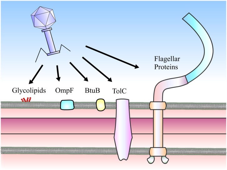 My whole goal for this newsletter is to provide a corner of the internet to talk about bacteria, computation, and everything that comes between. Within that landscape, I’ve personally encountered a lot of folks who discuss and study the weird (but potentially ground-breaking) world of bacteriophages. These small robot-shaped little guys, for the uninitiated, are viruses with an insatiable desire to target bacteria and replicate using the bacteria’s genomic machinery against them. They achieve this level of specificity to bacteria by matching the surface proteins of bacterial species to the receptor proteins found on the tail end of the bacteriophage (henceforth I will shift between calling them phages and bacteriophages, just whatever feels good as I type).